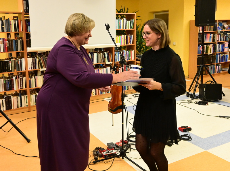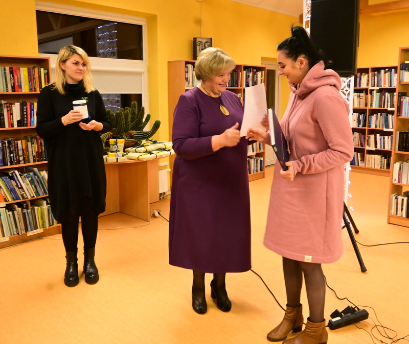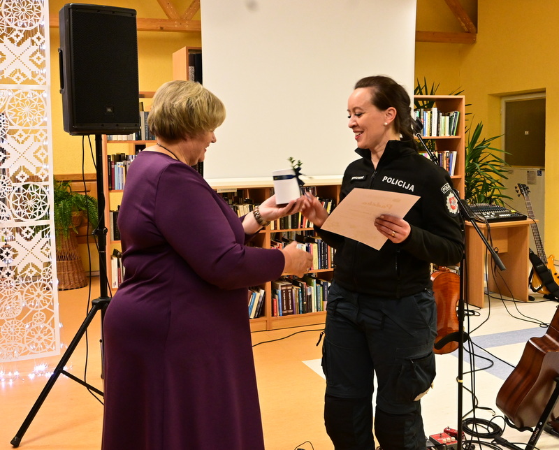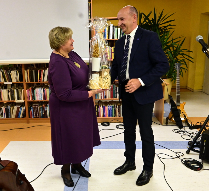 Šventiškame vakare kartu su kitais savivaldybės atstovais dalyvavęs vicemeras Vaidotas Židanavičius bibliotekos direktorei Loretai Aleknienei perdavė mero dovaną,  džiaugėsi bibliotekos veiklomis, linkėjo gražių ir prasmingų metų, meilės knygai ir kūrybai bei daugiau dalyvaujančių vyrų visose veiklose ir renginiuose.