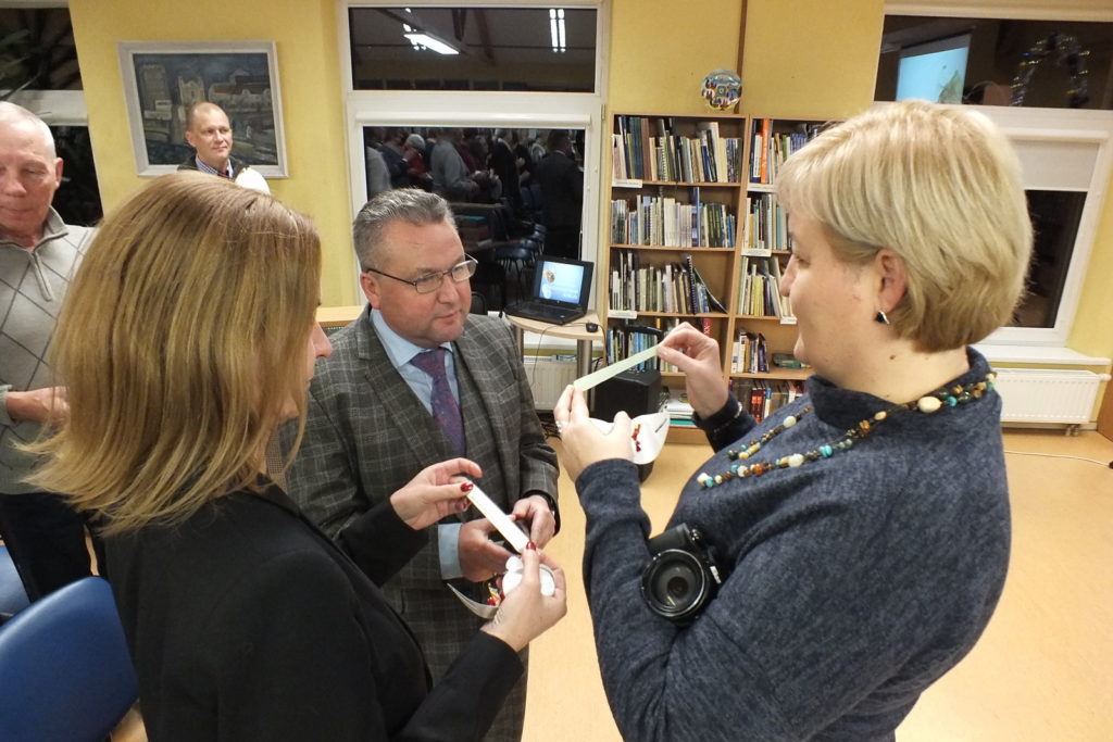 „Džiaugiuosi, kad bibliotekoje vyksta daug veiklų, daug įdomių projektų, kolektyvas išties stiprus ir toks geras, kad jį galima visiems pristatyti kaip pavyzdį.“,– sakė savivaldybės mero pavaduotojas Manfredas Žymantas, dėkojęs bibliotekos direktorei, darbuotojams už metų darbus ir dovanojęs 2020-ųjų savivaldybės kalendorių ir tortą.