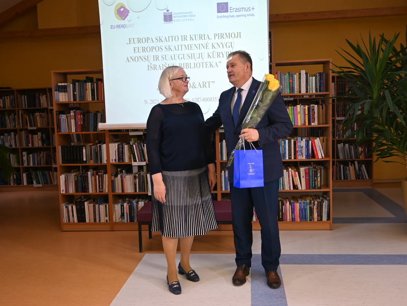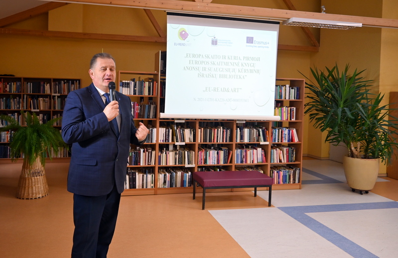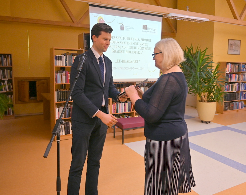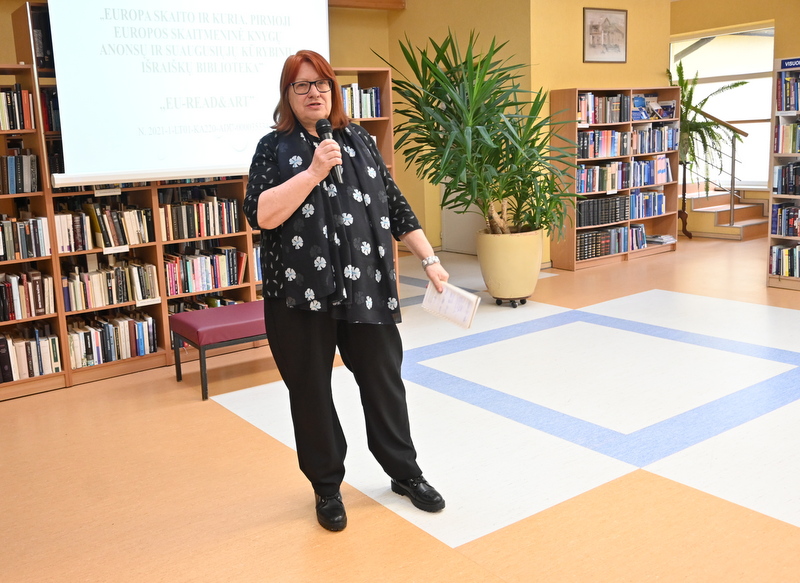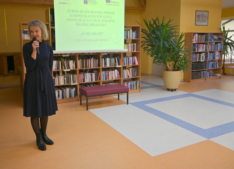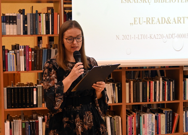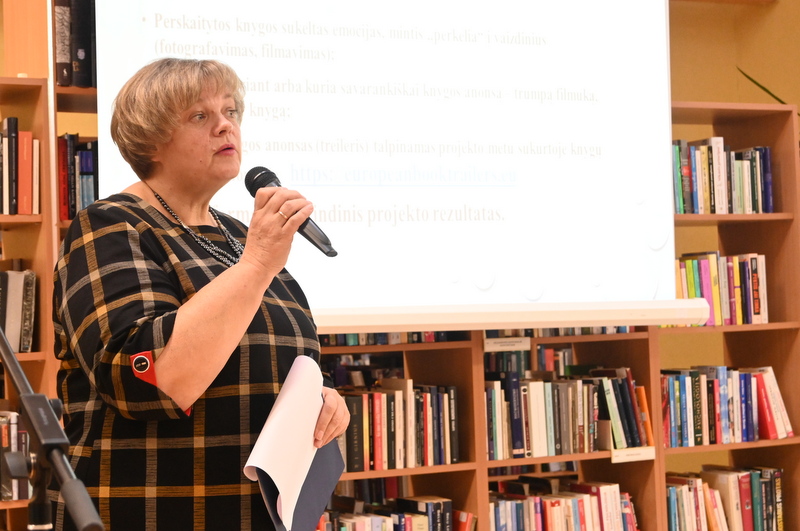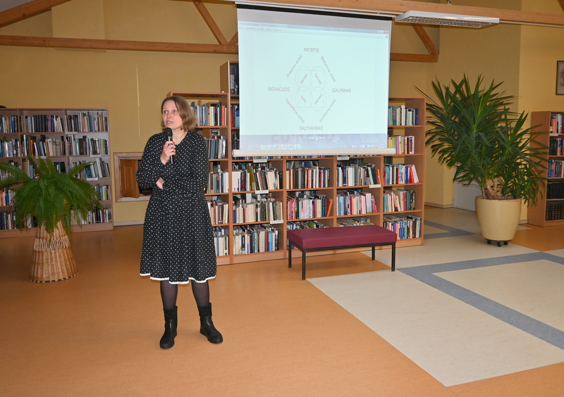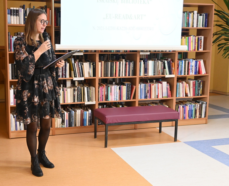 Apie projekto veiklas, partnerių šalyse vykusius mokymus, įdomius kūrybinius užsiėmimus, darbo grupių susitikimus, pažintines keliones pasakojo jo vadovė, bibliotekos direktoriaus pavaduotoja Vida Sekonienė ir administratorė, bibliotekos direktorė Loreta Aleknienė. Jos kvietė kartu pakeliauti prisiminimų takais ir įvertinti atliktų darbų naudą. ,,Greitai bus dveji metai, kai mes pradėjome šį projektą, kurio tikslas paprastas – knygų skaitymo, kūrybiškumo skatinimas, skaitmeninių žinių gerinimas, o bendraujat, kartu kuriant – ir socialinių bei emocinių problemų sprendimas…“,– sakė L. Aleknienė.