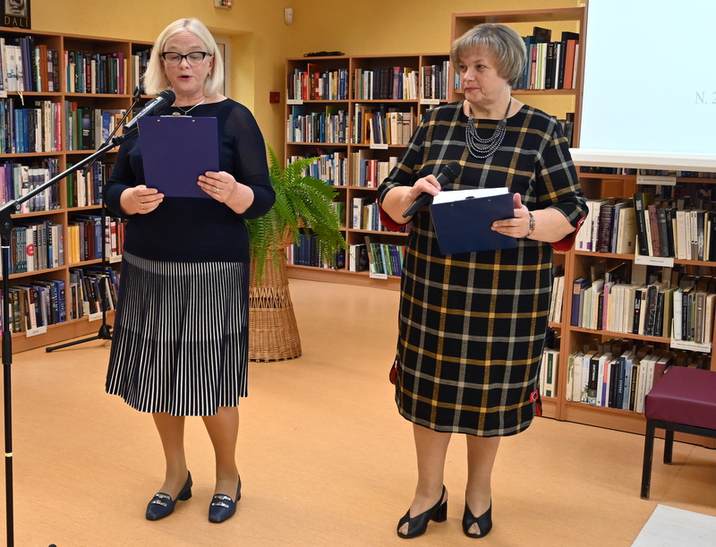 Apie projekto veiklas, partnerių šalyse vykusius mokymus, įdomius kūrybinius užsiėmimus, darbo grupių susitikimus, pažintines keliones pasakojo jo vadovė, bibliotekos direktoriaus pavaduotoja Vida Sekonienė ir administratorė, bibliotekos direktorė Loreta Aleknienė. Jos kvietė kartu pakeliauti prisiminimų takais ir įvertinti atliktų darbų naudą. ,,Greitai bus dveji metai, kai mes pradėjome šį projektą, kurio tikslas paprastas – knygų skaitymo, kūrybiškumo skatinimas, skaitmeninių žinių gerinimas, o bendraujat, kartu kuriant – ir socialinių bei emocinių problemų sprendimas…“,– sakė L. Aleknienė.