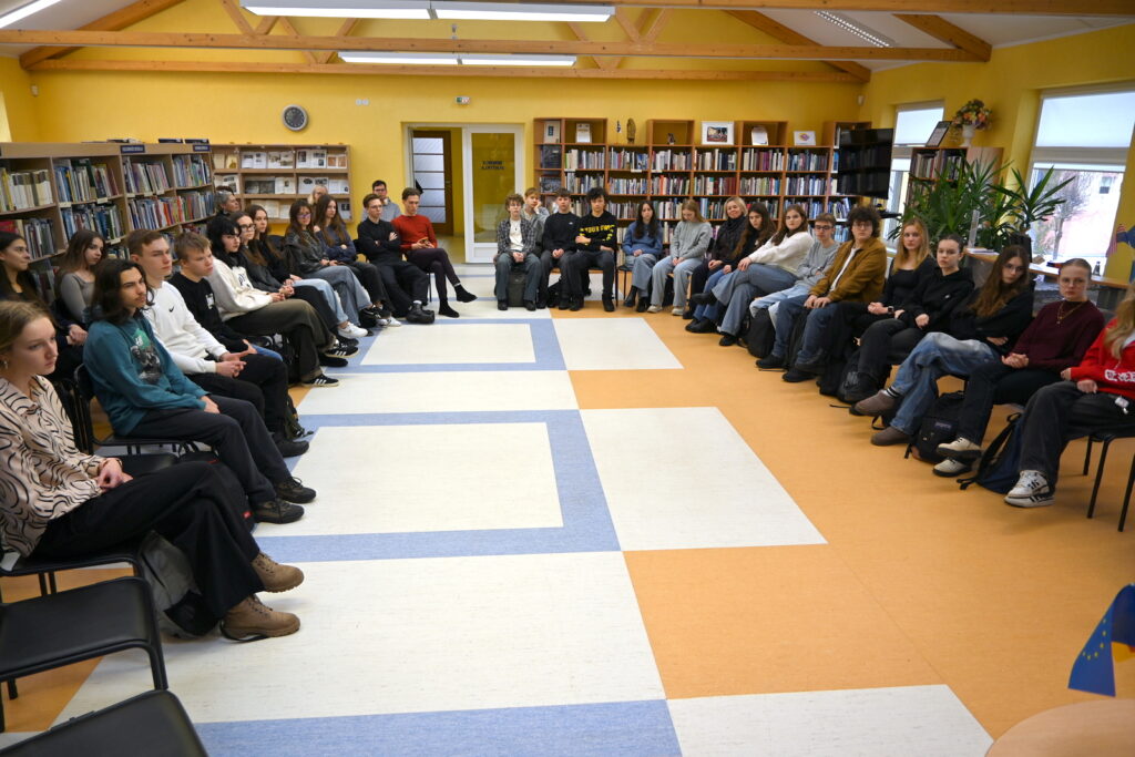 Vasario 5 dieną bibliotekoje vyko pirmasis šio projekto renginys – įdomus ir prasmingas susitikimas. Ignalinos gimnazijos vyresniųjų klasių moksleiviai dalyvavo diskusijoje su „FLEX Program Lithuania“ alumnais Eldaru ir Katrin. Jaunuoliai, metus praleidę Jungtinėse Amerikos Valstijose, dalijosi savo patirtimi ir įspūdžiais apie gyvenimą svetur.