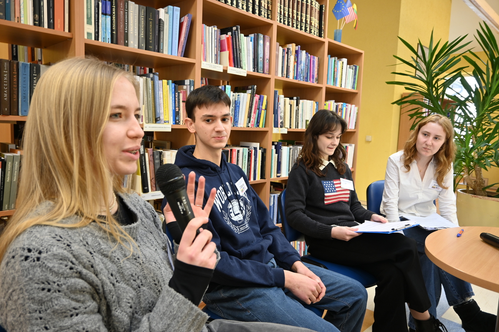 Diskusijos metu buvo aptartos JAV šventės – tiek tos, kurios švenčiamos ir Lietuvoje, tiek visiškai negirdėtos, bet nustebinusios savo unikalumu. Moksleiviai sužinojo apie amerikietiškas tradicijas, kultūrines vertybes, šeimos svarbą ir net „amerikietiškos svajonės“ fenomeną. Eldaras ir Katrin taip pat rekomendavo knygas bei filmus, kurie atspindi JAV kultūrą ir padeda geriau suprasti šią šalį.