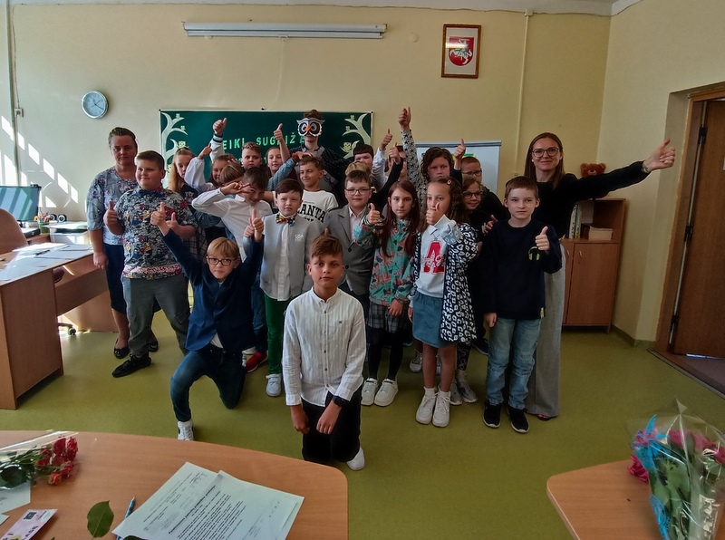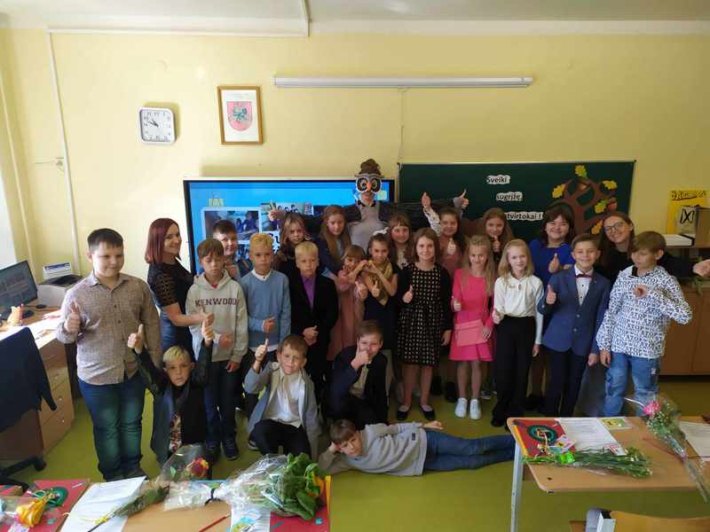 O kokia gi šventė be žaidimų – Pelėda Paulė pasiūlė vaikams, kartu su mokytoja ir tėveliais, sukurti nuotaikingą pasakojimą pagal korteles. Vaikai buvo drąsūs ir išradingi, o jų pasakojimas – labai stebuklingas, pilnas emocijų ir nuotykių. Taip pat vaikai galėjo pasitikrinti ar nepamiršo rašybos – dėliojo įvairius žodžius iš 3 D spausdintuvu pagamintų raidžių. Šventė prabėgo nuotaikingai ir linksmai. Viešnios atsisveikino su ketvirtokais linkėdamos lankytis bibliotekoje. Juk biblioteka visai netoli mokyklos ir yra vieta, kurioje galima pabūti, skaityti, atrasti, susitikti, nusiraminti ir džiaugtis.