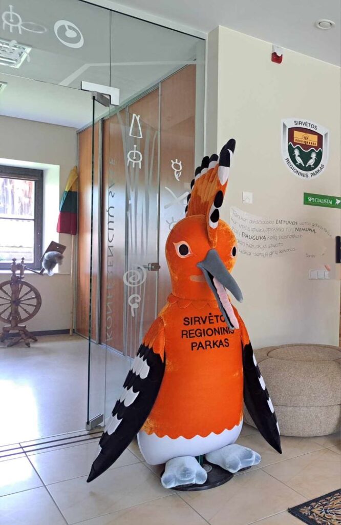 Antroji kelionės dalis tęsėsi Šventos kaime. Sirvėtos regioninio parko lankytojų centro darbuotojos lydimos apžiūrėjome ten įrengtą vidaus ekspoziciją, kurios tema „Mitologija“. Pagrindinio ekspozicijos elemento – Gyvybės medžio viduje išklausėme sakmę apie Bėlio ežero paslaptis, sužinojome vietovardžio Kochanovka kilmę. Po to patraukėme skulptūrų taku, pasisėmėme jėgų senųjų liepų pavėsinėje. O pabaigoje, virš galvų pakibus lietaus debesiui ir besukant link mašinos, buvo dar vienas netikėtas susitikimas: šneki ir draugiška moteris pasirodė besanti Šventos kaimo bibliotekininkė. Trumpas pokalbis baigėsi tuo, kad nutarėme bendradarbiauti, organizuoti bendrą renginį.