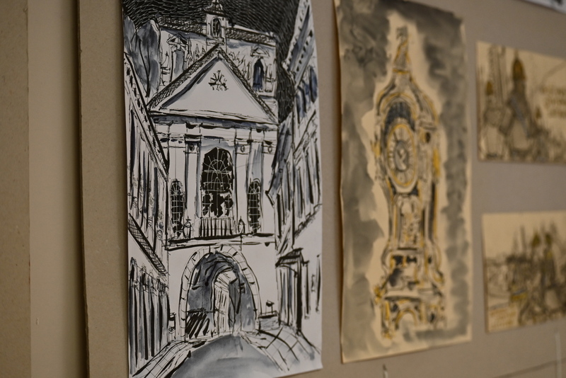 Ieva nebuvo lengvas pašnekovas, kaip pati teigia, viską pasakanti darbuose, tad ir bandyta daugiau ieškoti atsakymų kalbantis apie kūrinius ir su kūriniais. Parodoje eksponuojami tik du tapyti paveikslai. Visa kita – ranka ir kompiuteriu atlikti grafikos darbai: natiurmortai, istorinės tematikos darbai, Vilniaus architektūros vaizdai, plakatai, iliustracijos…