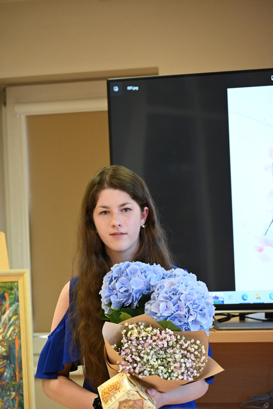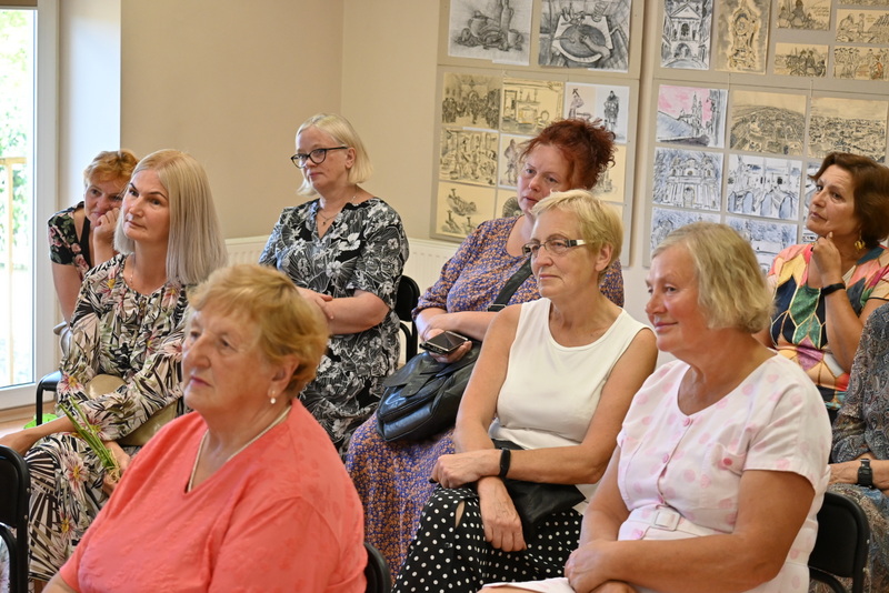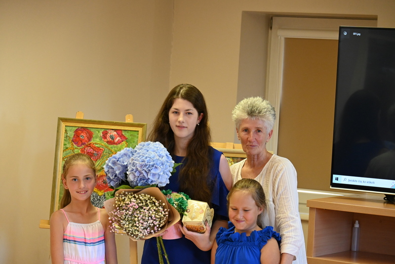 Jaukiame pokalbyje dalyvavo ir menininkės šeima, giminaičiai, esami ir gal būsimi draugai bei kūrėjos gerbėjai. Visi rado, kuo pasidžiaugti, ko palinkėti ir… ką padovanoti: plaukė gėlių jūra. Pabaigos akcentas – daug daug apsikabinimų ir nuo šiol ne tik nuo lietaus saugosiantis, bet ir jaukius gimtuosius miškus priminsiantis stilizuotas skėtis – bibliotekos dovana.