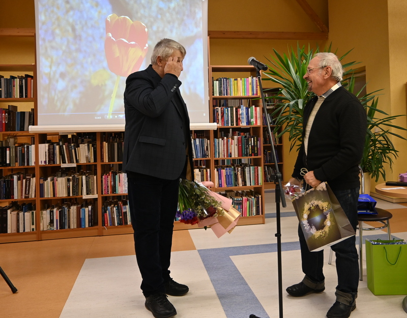 Ignalinos krašte gimusį ir užaugusį, dabar Švenčionėliuose gyvenantį  kūrėją pasveikino  renginyje dalyvavęs savivaldybės vicemeras Imantas Umbražiūnas. ,,Tiek daug gilių minčių ir rudeninės nuotaikos. Kiekvienas išgirdom kažką tik sau, kas sujaudino, kas palietė širdį…”, – sakė vicemeras. Už nuostabias eiles dėkojo ir išleisti 15-tą knygą linkėjo bibliotekos direktorė Loreta Aleknienė, literatų klubo kuratorė Laima Banienė.