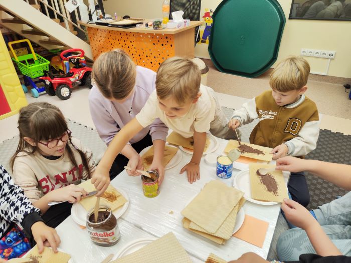 Mažylių skaitykloje vyko kulinarinė edukacija „Mažylių pyragas“. Vaikai turėjo progą išbandyti rankų miklumą gamindami pyragą iš vaflių. Patys mažieji tepė įvairius ingredientus ir sluoksniavo vaflius, sukurdami savitą skonių derinį. Po šio smagaus užsiėmimo dalyviai buvo pakviesti stebėti trumpą spektakliuką „Pagrandukas“, kurį parengė Mingailė, Lėja ir Viltė. Galiausiai visi draugiškai skanavo savo pačių sukurtą „pyrago“ šedevrą, mėgaudamiesi pasiektu rezultatu.