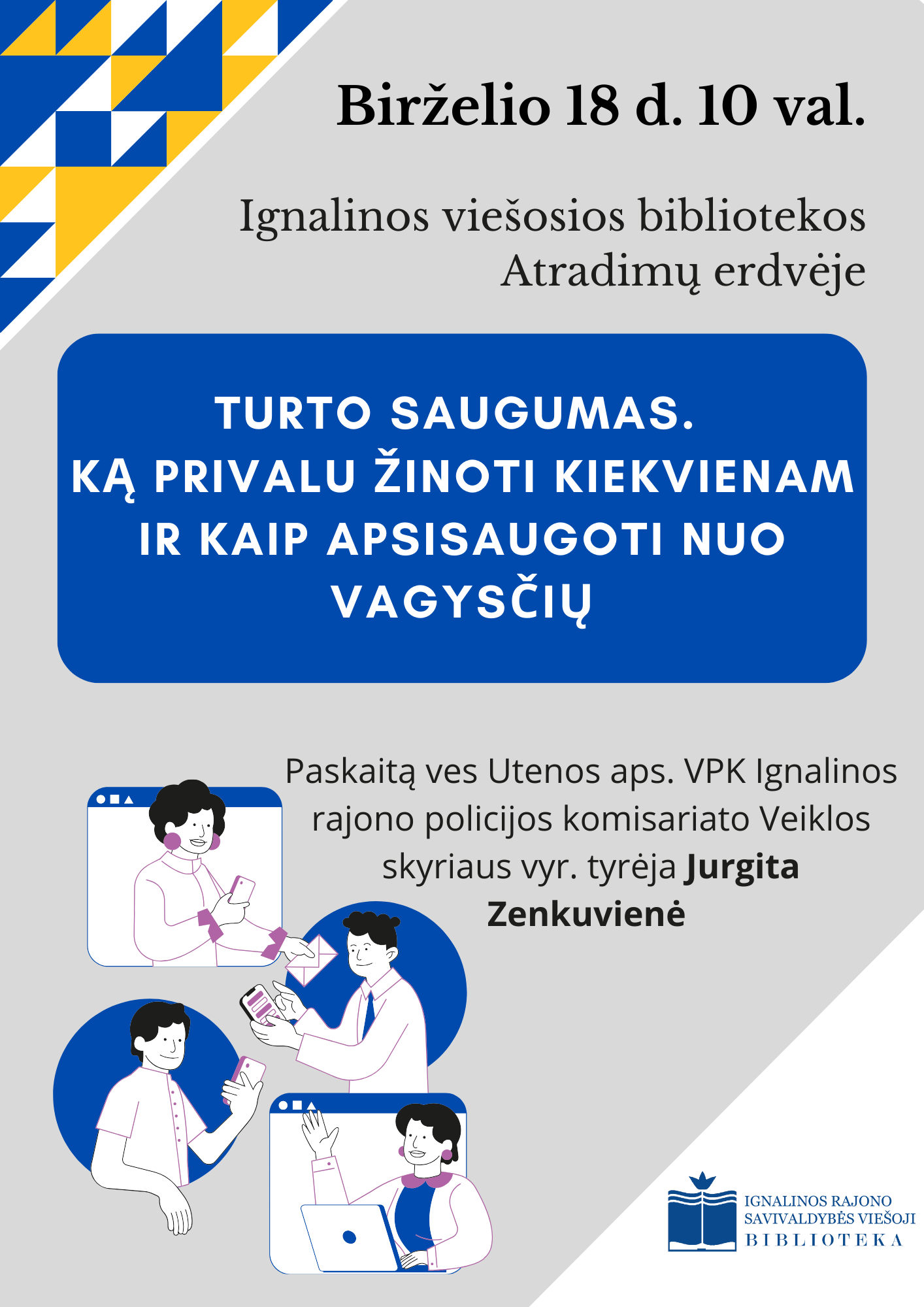 Birželio 18 d. 10.00 val. Ignalinos viešosios bibliotekos Atradimų erdvėje paskaita „Turto saugumas. ką privalu žinoti kiekvienam ir kaip apsisaugoti nuo vagysčių.