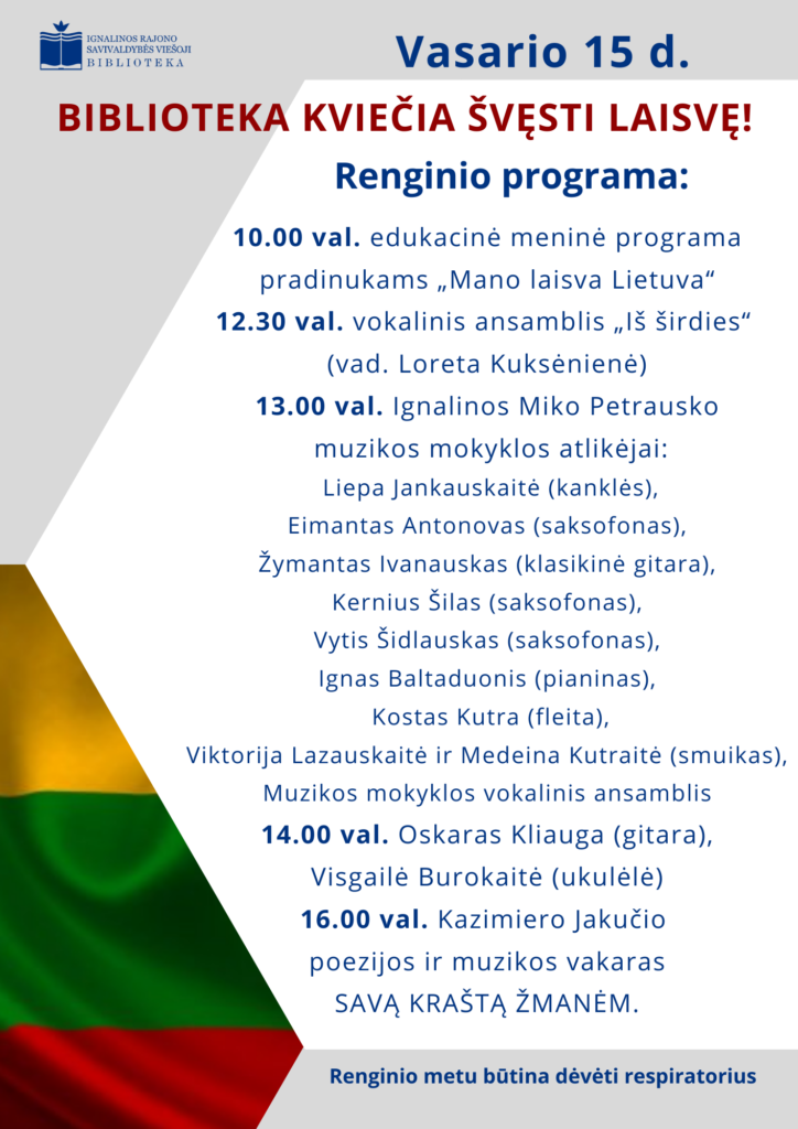 Vasario 15 d. bibliotekoje Jūsų laukia muzikinė programa. Taip pat kviečiame visus norinčius skaityti savo ar mėgstamų rašytojų kūrinius, eiles.