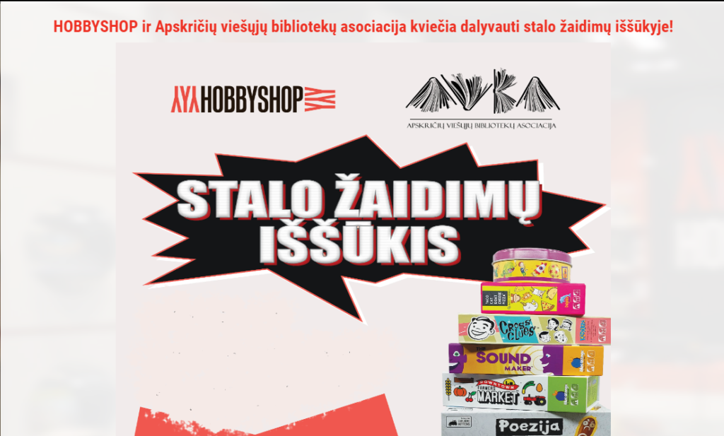HOBBYSHOP – smagūs stalo žaidimai ir galvosūkiai vaikams ir suaugusiems – kviečia jus linksmai praleisti laiką bibliotekoje!