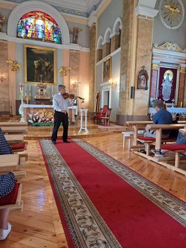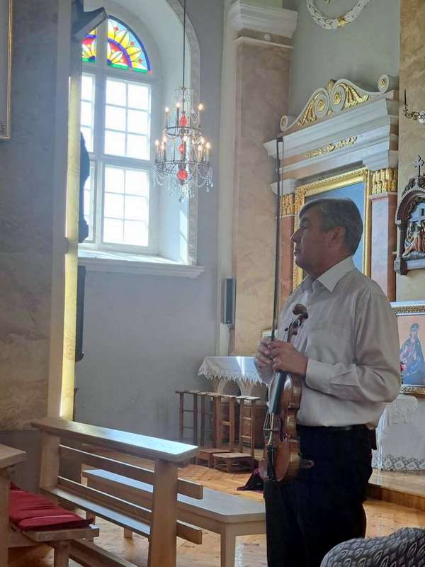 Buvo numatyta, kad vyks špitolėje, bet bažnyčios vėsa karštą dieną geriau tiko. o ir smuikas skambėjo didingai