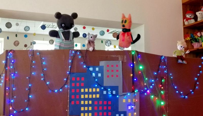 Vaikučiai stebėjo, o kai kurie ir patys dalyvavo pagal T. Heapy ir D. Litchfild knygą „Spindintis miestas“ sukurtame spektaklyje. Tai nepaprasta ir pamokanti istorija apie tikrą draugystę. Jaunieji žiūrovai džiaugėsi dekoracijų šviesomis, spalvino namelius, kartu su mokytojomis, mielomis ir šauniomis bibliotekos darbuotojomis, kūrė svajonių miestą, žaidė smagius žaidimus.