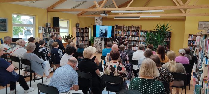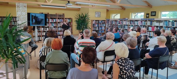 Vėliau žmonės rinkosi Ignalinos rajono savivaldybės viešojoje bibliotekoje. Čia ekrane buvo demonstruojamos istorinės Baltijos kelio ir jo jubiliejų minėjimo nuotraukos.