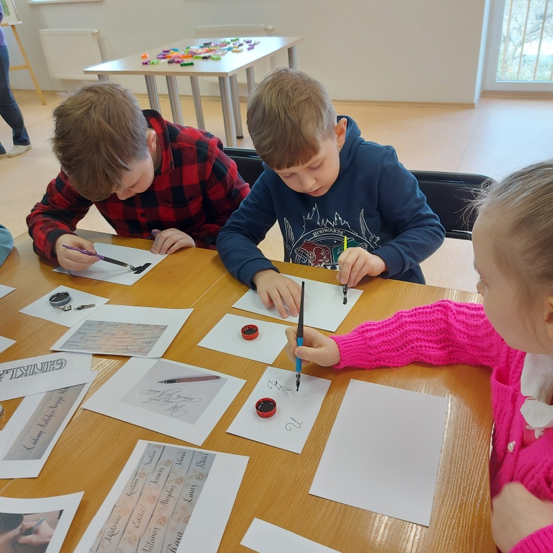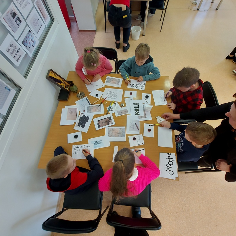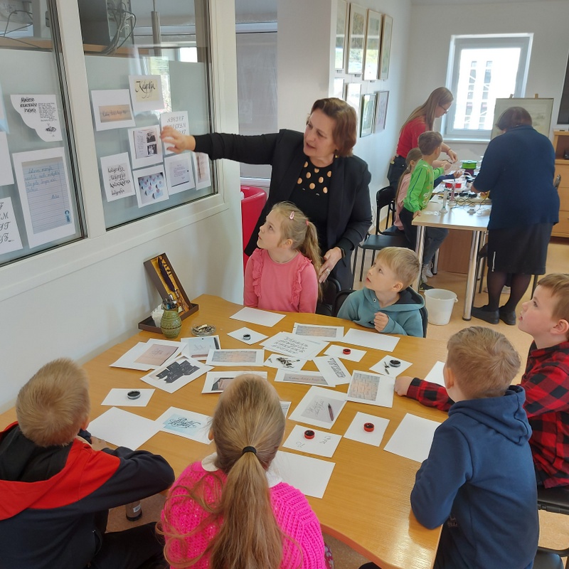 Ignalinos Česlovo Kudabos gimnazijos pradinukai antrokai dalyvavo Spaudos atgavimo, kalbos ir knygos dienos proga Ignalinos viešojoje bibliotekoje surengtose kūrybinėse dirbtuvėse. Mokinukai susipažino su bibliotekoje esančia knygų įvairove: ir pačiomis mažiausiomis, ir daugiausiai sveriančiomis, ir seniausiomis, taip pat šiuolaikinėmis knygomis su garsais, be žodžių ar lytėjimo funkciją lavinančiomis. Antrokai sužinojo kas ta kaligrafija ir  galėjo tušu įvairiomis plunksnomis dailiai išrašyti, išpiešti raides, savo vardus. Dar tądien vaikai galėjo pabandyti spausdinti rašomąją mašinėle, 3 D pieštukais nupiešti savo vardo raides, 3 D spausdintuvu atspausdintomis raidėmis kurti žodžius. Vaikai stengėsi sugalvoti iš esamų raidžių kuo daugiau žodžių. Visi buvo labai kūrybingi, greitai mąstantys ir kruopštūs.