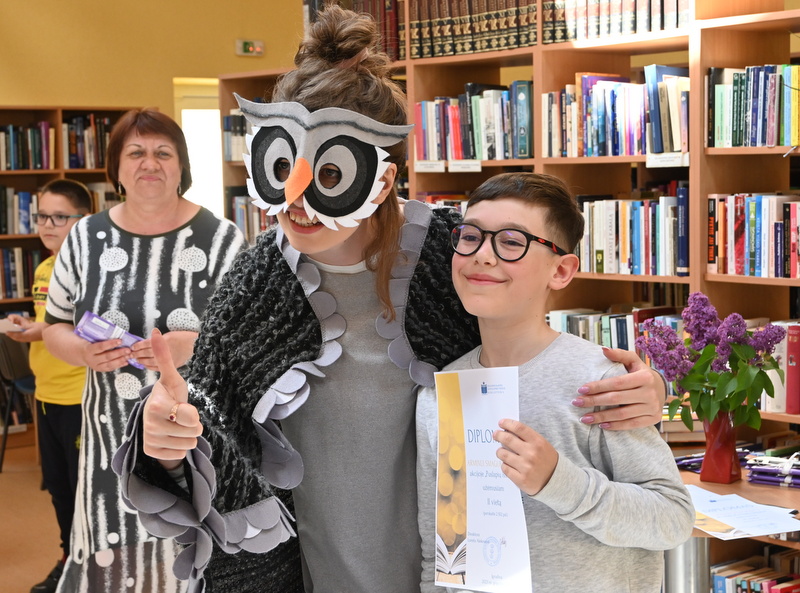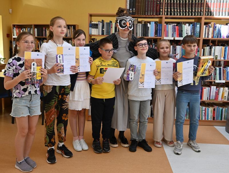 Gegužės 25 d. bibliotekoje vyko akcijos „Puslapių iššūkis“ baigiamasis renginys – apdovanojimai ir žaidimai. Pelėda Paulė džiaugėsi ir stebėjosi tokiu vaikų aktyvumu skaitant knygas. Pelėda domėjosi kokios knygos, kokie personažai vaikams patiko, ką perskaityti pasiūlytų savo geriausiems draugams vasarą. Mokiniai, žinoma, labiausiai laukė akcijos rezultatų paskelbimo. O jie buvo tokie: visos trys klasės kartu per mokslo metus perskaitė net 63 117 puslapių! Taigi, su knyga vaikai praleido tikrai nemažai nuostabių akimirkų. Pelėda Paulė pasveikino ir įteikė diplomus bei dovanas laimėtojams. Trečiąją vietą užėmė Tadas Lašinskas (4 c), Žymantas Ivanauskaas (4 b), Viktorija Lazauskaitė (4 a), antroji vieta atiteko Miglei Aidukaitei (4 c), Lėjai Martinkevičiūtei (4 b) ir Arminui Smagurauskui (4 a), pirmoji vieta – Lukui Zabolevičiui (4 c), Evelinai Patiejūnaitei (4 b), ir Medeinai Cicėnaitei (4 a). Taip pat Pelėda Paulė pasveikino ir įteikė diplomą 4 c klasei, kuri kartu perskaitė daugiausiai puslapių, net 28 888. Saldus prizas mokinių laukė mokykloje.