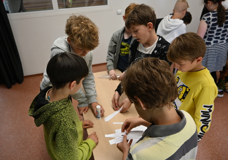 Po apdovanojimų laukė žaidimai ir linksmybės. Ketvirtokų klasės atskirose bibliotekos erdvėse dalyvavo žaidimuose ir atliko įvairias užduotis. Skaitykloje kūrė istorijas pagal gautas korteles. Kokių tik nebuvo istorijų: apie burtininkus, apie stebuklingą gėrimą, apie katiną su riedučiais ir dar apie daug kitų įdomių negirdėtų dalykų. Smagiai vyniojo siūlų kamuolį, atskleisdami savo pomėgius ir dalindamiesi jais su klasės draugais. Atradimų erdvėje ketvirtokams teko iš 3D spausdintuvu atspausdintų raidžių sudėlioti kuo daugiau ir įvairesnių žodžių. Taip pat mokiniai teisingai sudėti sukarpytą pasakos tekstą, čia reikėjo prisiminti lietuvių kalbos pamokas arba skaitytas pasakas.