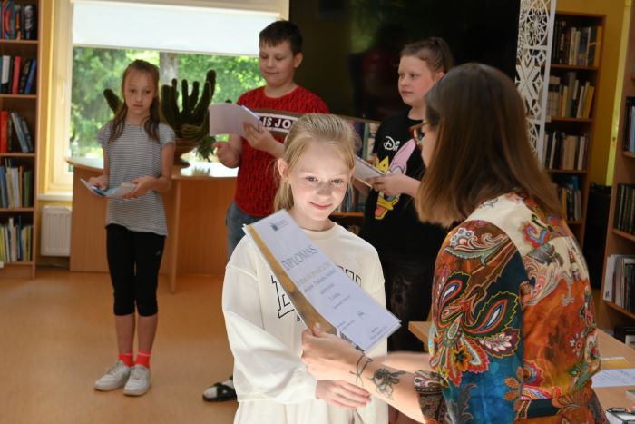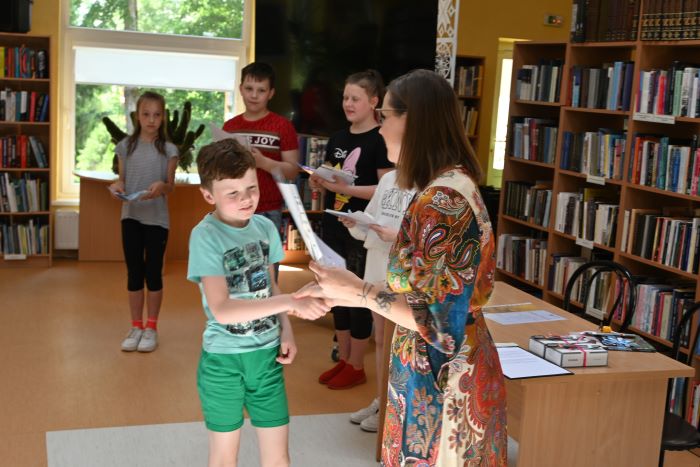 Po diplomų įteikimų ir apdovanojimų vaikų laukė dar vienas siurprizas. Bibliotekoje svečiavosi rašytojas Marius Marcinkevičius ir dailininkė Lina Itagaki. Jie pristatė savo knygas, paskaitė jų ištraukas ir pakvietė vaikus smagiai pažaisti bei įsijausti į knygų personažų vaidmenis.