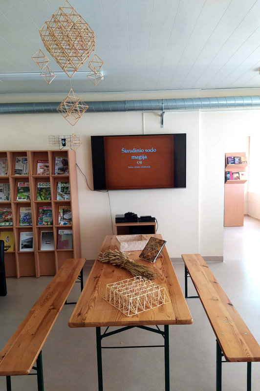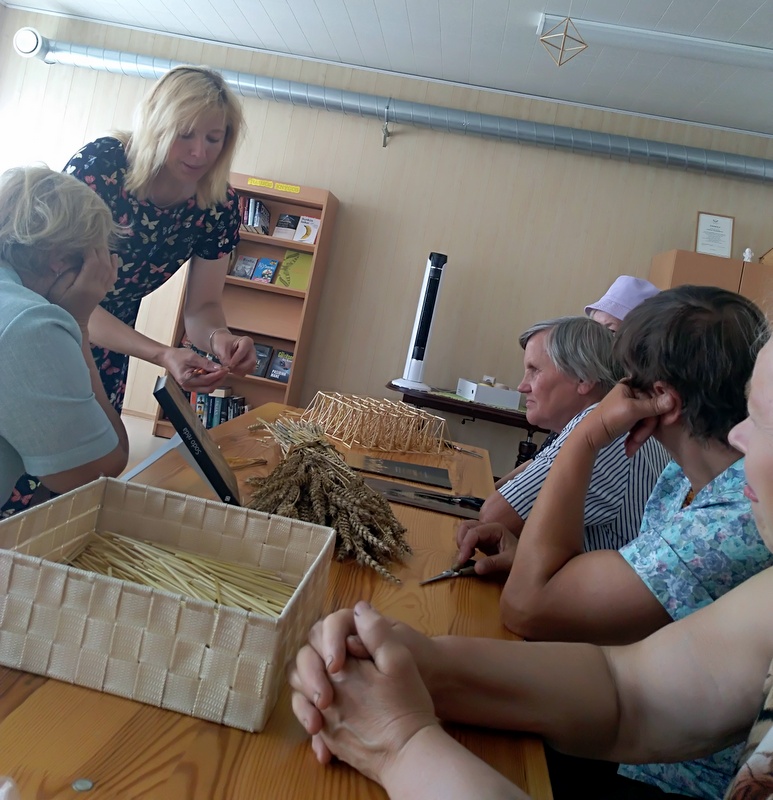 Liepos 26 d. Meikštų bibliotekoje lankėsi pagyvenusių žmonių klubo „Rudenėlis“ nariai. Bibliotekininkė Jolanta Žuromskienė trumpai papasakojo svečiams apie biblioteką, krašto istoriją, pristatė kraštotyros ekspoziciją, bibliotekoje eksponuojamą A. Verbickienės tapybos parodą ir nuolat veikiančią sodų parodą, kurios autorės yra pati Jolanta ir jos kolegė Ilona Abaravičienė. Tačiau pagrindinis vizito tikslas buvo dalyvauti edukacijoje „Šiaudinio sodo magija“ ir susipažinti su šių sodų rišimo subtilybėmis. Pirmiausiai Jolanta kalbėjo apie šiaudinių sodų reikšmę. Iš suvertų ant siūlo šiaudelių surištas papuošalas, kuris būdavo kabinamas virš stalo suteikdavo džiaugsmo, bendrumo, geros energijos. „Labai svarbu, kad sodas suktųsi virš stalo, – sakė Jolanta, – tikėta, kad tada jis suteikia energijos„ Pasirodo, lietuviai tokius sodus dovanodavo per vestuves ir krikštynas, papuošdavo jais namus prieš Velykas ir Kalėdas, tikėjo jų sakralumu, magiškomis galiomis. Pastaruoju metu ši nykstanti tradicija vėl atgimsta Lietuvoje. Susipažinę su magiškosiomis sodų savybėmis klubo nariai patys pabandė surišti pagrindinį sodo elementą – rombą, kuriais papildė „Draugystės“ sodą, kabanti bibliotekoje. Atsisveikindami senjorai dėkojo darbštuolei bibliotekininkei Jolantai Žuromskienei ir linkėjo jai kūrybinio įkvėpimo kuriant magiškus sodus.
