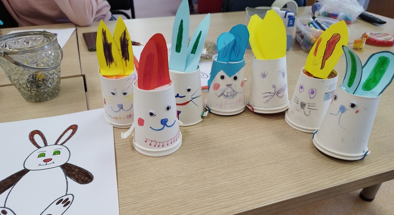Kovo 25 d. Atradimų erdvėje vyko dar vienas šeimadienis. Šį kartą dėmesį skyrėme kiškiams, nes artėja smagi pavasario šventė – Velykos. Skaitėme knygeles apie zuikučius. Vaikai kartu su mamytėmis ir močiutėmis iš popierinių puodelių, butelių kamštelių, panaudotų baterijų, popierių, kanceliarinių gumelių, kitų medžiagų pasigamino šuoliuojančius kiškučius. Procesas buvo įdomus ir intriguojantis, nes norėjosi greičiau pamatyti rezultatą. Vėliau vaikai piešė, žaidė interaktyvius žaidimus bei šoko „Just Dance“.