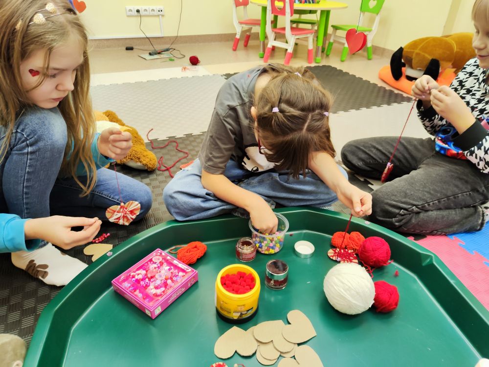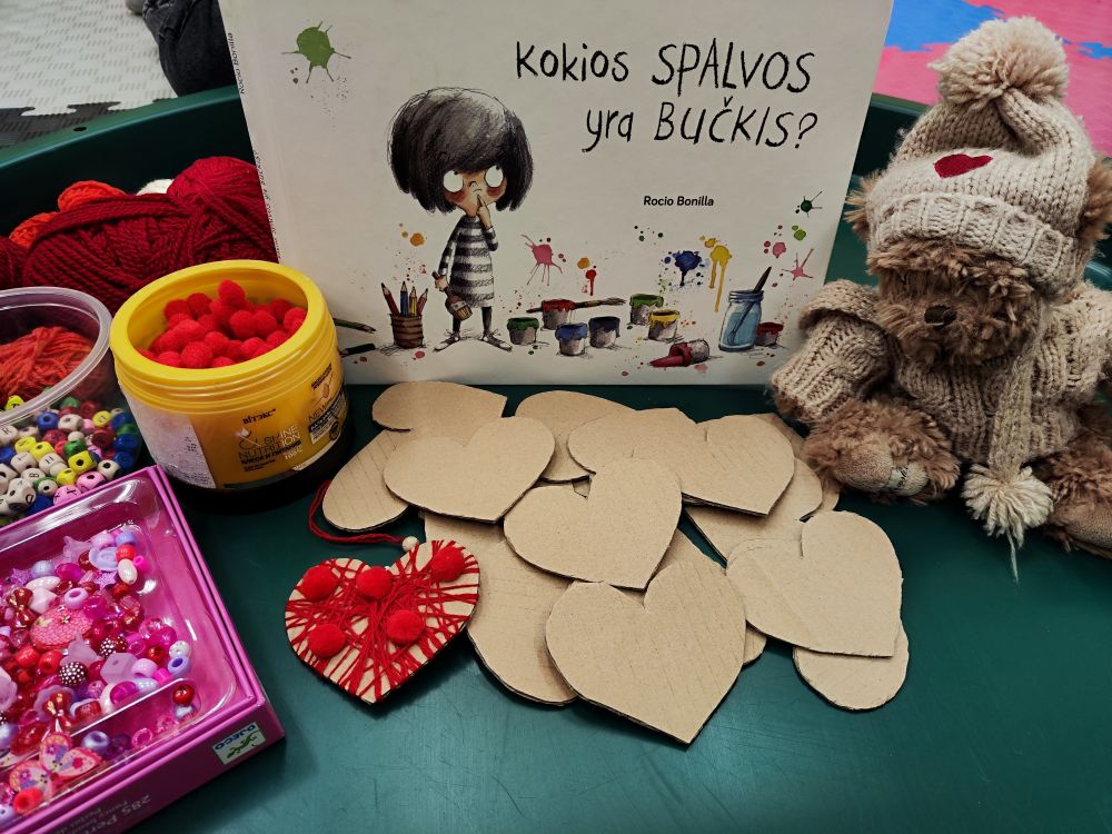 Vėliau vaikai dalyvavo kūrybinėse dirbtuvėlėse – dekoravo širdeles. Kiekviena sukurta širdelė tapo unikalia dovanėle mylimiems žmonėms.