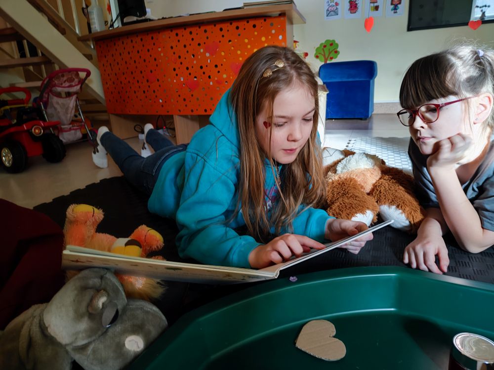 Šventės metu vaikai skaitė Rocio Bonilla knygelę „Kokios spalvos yra bučkis?“. Skaitymas sukūrė jaukią ir šiltą atmosferą, o smagi istorija kvietė mažuosius susimąstyti apie meilės spalvas ir jausmų išraišką.