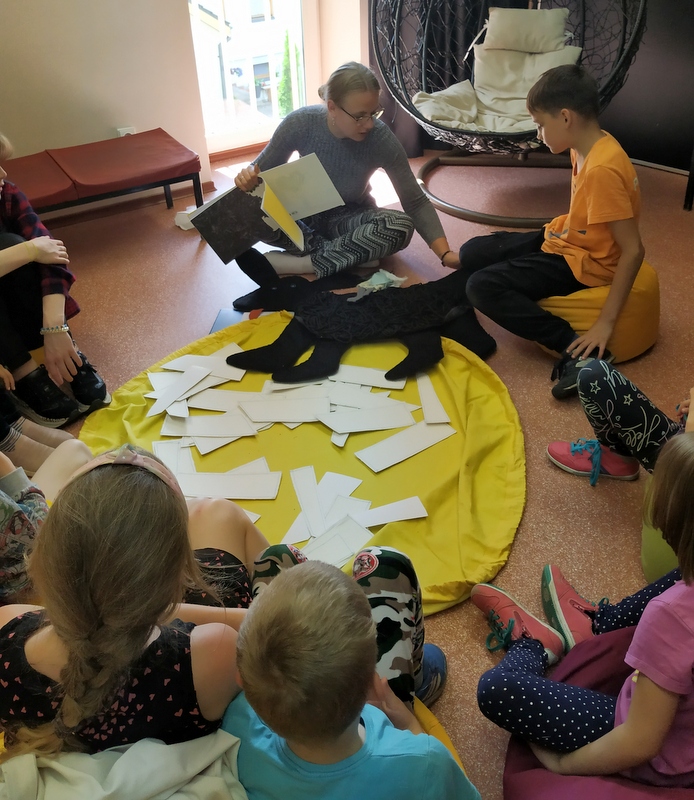 Birželio 15 d. Atradimų erdvėje prasidėjo garsiniai vaikų vasaros skaitymai, kurie jau tapo tradicija ir vyksta kiekvieną vasaros trečiadienį. Šį kartą skaitymus pradėti pasakojimo pagal Ievos Babilaitės tyliąją (bežodę) knygą „(Ne)vienas“ kūrimu. Edukacinės programos metu vaikai buvo supažindinti su tyliąja knyga bei jos skaitymo strategija. Kadangi knygoje tik iliustracijos ir nėra jokių žodžių, bibliotekininkės kartu su vaikais kūrė pasakojimą. Į pagalbą pasitelktas Panevėžio apskrities Gabrielės Petkevičaitės-Bitės projekto „Pasakojimo meno ir metodo modelio sukūrimas Lietuvos bibliotekoms“ pasakojimams skirtas rinkinys.