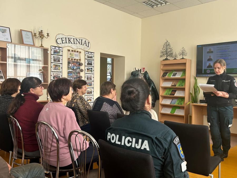 Vasario 19 d. Ceikinių bibliotekoje vyko Utenos apskr. VPK Ignalinos rajono policijos komisariato bendruomenės pareigūnių susitikimas su vietos gyventojais. Atvyko pareigūnės Nadežda Larionova ir Jurgita Zenkuvienė.