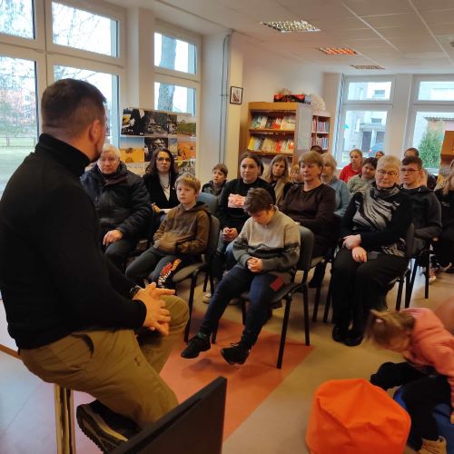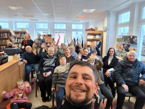 Didžiasalio bibliotekoje vyko susitikimas su charizmatišku pro lygos drifteriu ir ralio pilotu Gediminu Ivanausku – Ivanule. Pamatyti sportininką susirinko ne tik Didžiasalio „Ryto“ gimnazijos mokinių ir mokytojų būrys, bet ir Didžiasalio vaikų globos bei socialinės paramos šeimai centro socialiniai darbuotojai su vaikais. Taip pat atvyko miestelio gyventojai bei svečiai. Gediminas puoselėja šiltus jausmus Ignalinos kraštui, nes čia prabėgo jo nerūpestinga vaikystė. Dar dabar jį su Ignalinos kraštu sieja krikšto mama ir draugai. Apie susitikimą su sportininku gimnazijos puslapyje įspūdžiais dalinosi renginio dalyvė, mokytoja Nijolė Keraitienė: „Kalbinamas bibliotekininkės Audronės Filipavičienės charizmatiškas svečias papasakojo apie pagalbą, teiktą Ukrainai pirmosiomis karo dienomis ir vėliau. Gediminas minėjo, kad važiavo į karo niokojamą šalį dvidešimt kartu ir su klausytojais dalinosi tuo, kas liko už kadro Ukrainoje. Susitikimo dalyviams tai buvo įspūdingas momentas, parodantis, kiek daug gali vienas žmogus. Svečias pasakojo, kad nekartą  Lietuvos pagalbos kolonai teko patirti oro antskrydžius, ypač pabrėždamas paprastų žmonių vienybę ir pasiryžimą padėti kenčiančiai šaliai. Vėliau pašnekovas pasidalino mintimis ir vaizdais iš lenktynininko, drifterio gyvenimo patirties. Susirinkusius jaunus žmones domino, kokią mašiną jis vairuoja, kiek ji kainuoja, kur galima išmokti driftinti, kaip tapti lenktynininku. Gediminas papasakojo apie daugybę šalių, kurių varžybose dalyvavo, ir daugybę neužmirštamų įspūdžių, kuriuos patyrė. Svečio atsivežta nuotraukų parodėlė po susitikimo greitai ištirpo, nes gavę leidimą pasiimti nuotraukas renginio dalyviai rikiavosi prie jo dėl autografų, daugelis prašė kartu nusifotografuoti. Energija trykštantis jaunas vyras sužavėjo visus savo veiklumu, pilietiškumu ir iškalba. Linkime jam sėkmės trasose!“ Po susitikimo socialiniame tinkle teko bendrauti su Gedimino mama. Negaliu nepasidalinti tuo, kaip ji didžiuojasi savo sūnumi. Kiek jai teko pergyventi, išleidžiant sūnų į karo zoną. Ji džiaugėsi, kad jis atvažiavo į Didžiasalį neieškodamas jokios naudos.
