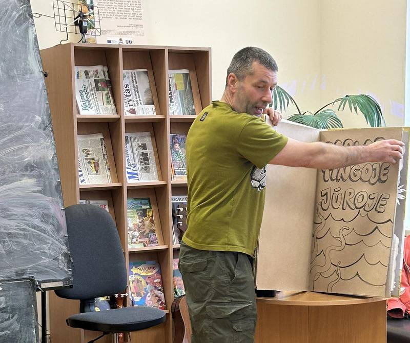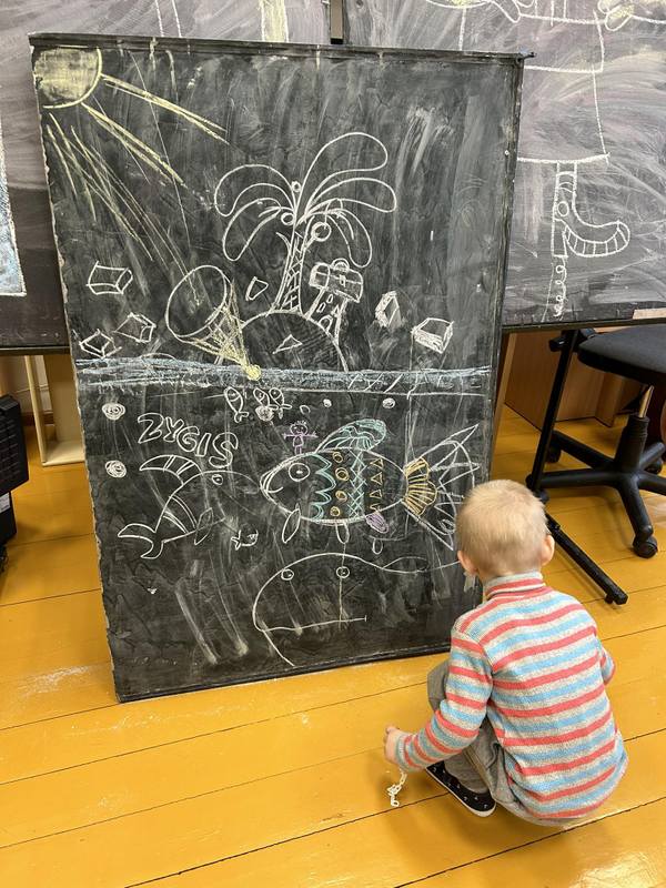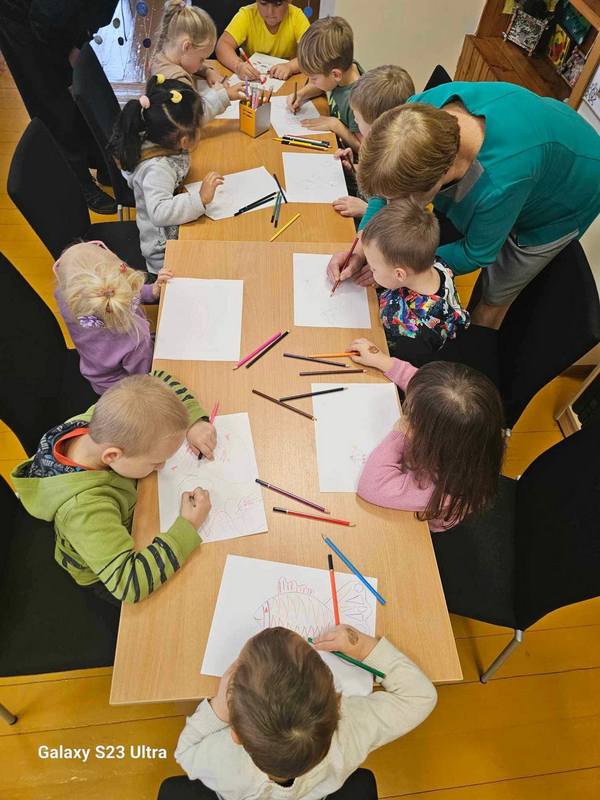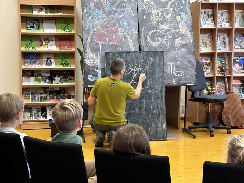 Lapkričio 16 d. Ceikinių bibliotekoje prasidėjo nuotaikingu rytmečiu, nes mūsų laukė susitikimas su vaikų rašytoju, dailininku ir muzikaliu edukatoriumi Pauliumi Juodišiumi. Drauge Ignalinos Česlovo Kudabos gimnazijos Ceikinių skyriaus priešmokyklinės ir ikimokyklinės grupės mokiniais dalyvavome išradingose vaizduotės lavinimo kūrybinėse dirbtuvėse – „Išminkyk savo mintis“ – kūrėme įvairias išgalvotas būtybes, kurias rašytojas atvaizdavo piešdamas ant lentos. Suteikėme joms veiksmo, pagyvindami skambiais ir išradingais muzikiniais garsais.