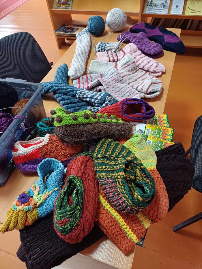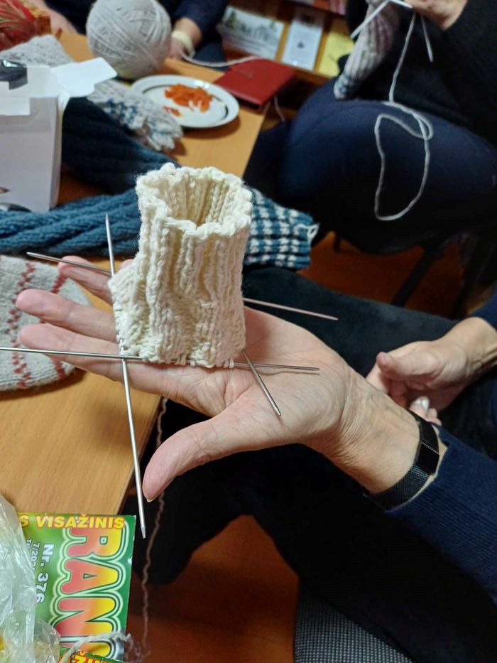 Kitas įdomus netikėtumas buvo kai bibliotekininkė Audronė parodė, kaip galima nusimegzti puikias kojines naudojant tik du virbalus, nes daugelis mezgėjų įprastai naudoja penkis. Jos pamoka buvo puiki galimybė pažiūrėti į mezgimo procesą iš kitos pusės ir išmokti naujų technikų, kurios galbūt pasirodys paprastesnės, tačiau ne mažiau efektyvios.