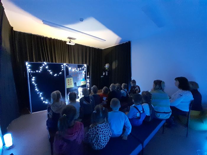 Bibliotekos lėlių teatras „Mįsliukas“ mažiesiems pristatė šventinį spektaklį pagal David Litchfield ir Teresos Heapy knygą „Spindintis miestas“. Tai jautri istorija apie draugystę, kurioje pasakojama apie peliuko ir meškiuko kelionę, patirtus pavojus, nuotykius, ir apie tai kaip svarbu turėti tikrą draugą.