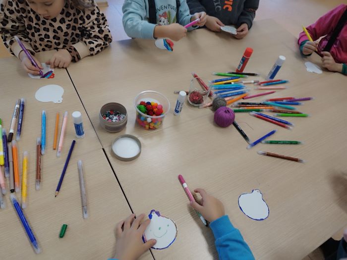 Po spektaklio vaikai aktyviai dalyvavo kūrybinėje veikloje – dekoravo kalėdinius žaisliukus, žaidė interaktyvius žaidimus, džiaugėsi bendravimu su draugais. Mažieji nuoširdžiai dėkojo už jaukų priėmimą, bei linkėjo visiems gražaus ir stebuklingo švenčių laukimo.