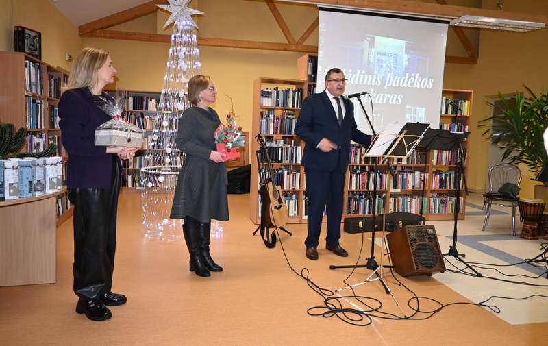 Bibliotekos veikla, gražiais renginiais ir  tarptautiniais projektais džiaugėsi, bibliotekininkams už jų nuoširdų darbą dėkojo ir visiems taikos bei gražių švenčių linkėjo savivaldybės mero pavaduotojas Juozas Rokas. Renginyje dalyvavo savivaldybės administracijos direktoriaus pavaduotoja Lina Gladkauskienė, Švietimo ir kultūros skyriaus vyr. specialistė Rasa Juodagalvienė.