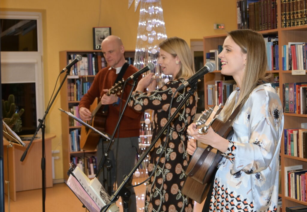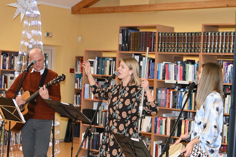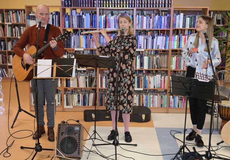 Padėkos vakaras tradiciškai užbaigtas bendra dovana visiems susirinkusiems. Nuotaikingą ir poetišką koncertą Ignalinon atvežė puiki aktorių grupė ,,Šaltinių trio“. Skambėjo autorinės Juozo Gaižausko, Gabrielės Malinauskaitės ir Emilijos Latėnaitės dainos, gitarų, fleitos ir būgnelių garsai bei gražiausios V. Mačernio, A. Miškinio ir kitų lietuvių poetų eilės. Atlikėjams ir svečiams dovanoti 2023 m. kalendoriai, kuriuose įamžintos kartu su muziejumi organizuoto konkurso fotografijos ir Ignalinos istorijos. Vėliau visi Padėkos vakaro dalyviai pakviesti pabendrauti prie arbatos stalo. Biblioteka gražiai užbaigia šiuos metus ir žada, kad kitais tikrai kažką naujo sukurs, nuveiks, dovanos…