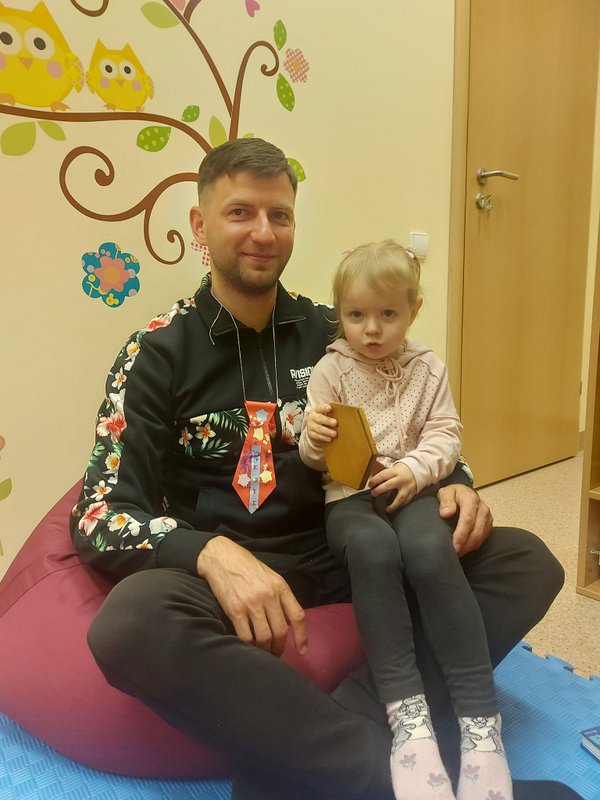 Birželio 3 d. Mažylių skaitykloje vyko Tėčio dienai skirta edukacija „Padovanok tėčiui šypseną“. Vaikai aktyviai klausėsi skaitomos istorijos apie Kakės Makės supertėčio dieną (Linos Žutautės knygos), kalbėjosi apie tai kaip smagu ir gera būti su tėčiu, kaip svarbu jį turėti, kokias įdomias veiklas galima nuveikti kartu. Su tėčiu visuomet jautiesi saugus, tėtis apgina ir paguodžia, moka nuraminti. Su juo visuomet būna linksma. Taip pat vaikai dalyvavo kūrybinėse dirbtuvėlėse, kurių metu gamino kaklaraiščius savo mylimiems tėveliams dovanų.