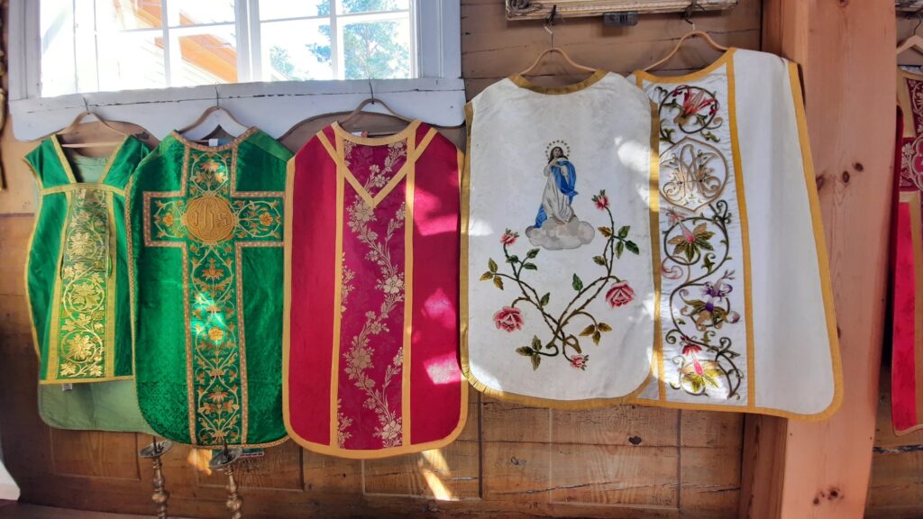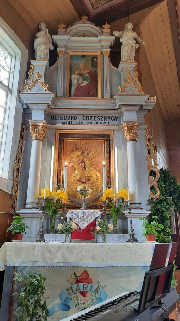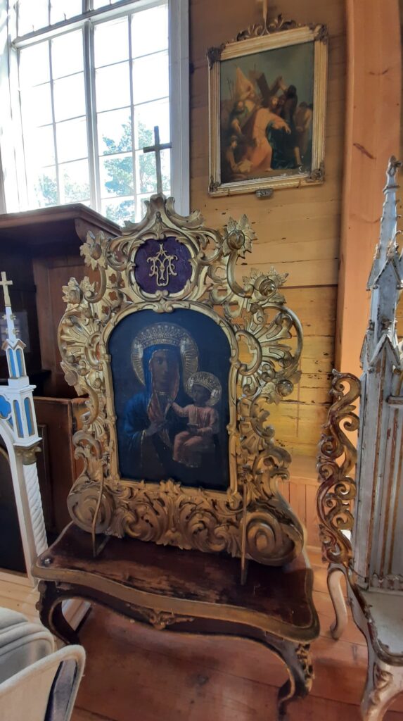 Bažnyčią puošė kunigo Jono Mačiulio paruošta sakralinio paveldo paroda. Kunigas pristatė daug bažnyčios vertybių, paaiškino jų vertę, atsakė i klausimus. Gaidės bažnyčioje yra ligi šių dienų išlikusių senų paveikslų (penki kultūros paminklai), kurios ne visada galima pamatyti. Paveikslai demonstravimui yra nuleidžiami tam tikra proga ir juos tą dieną visi turėjo galimybę pamatyti.