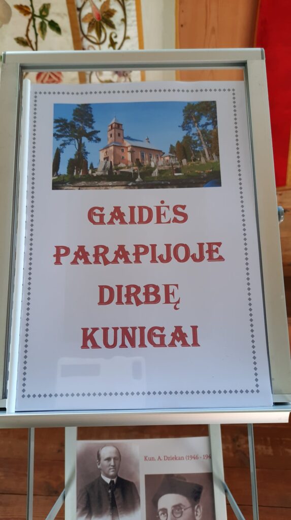 Pavyko surinkti informaciją apie visus čia tarnavusius kunigus. Visi jie vienaip ar kitaip prisidėjo prie bažnyčios ir parapijos gyvenimo. Daugiausiai žinoma apie žymųjį kunigą archeologą Juozapą Žiogą, kuris tarnavo Gaidėje tik 4 metus, bet įnešė nemažai naujovių. Apie jį parodoje buvo pristatyta atskirai surinkta medžiaga.