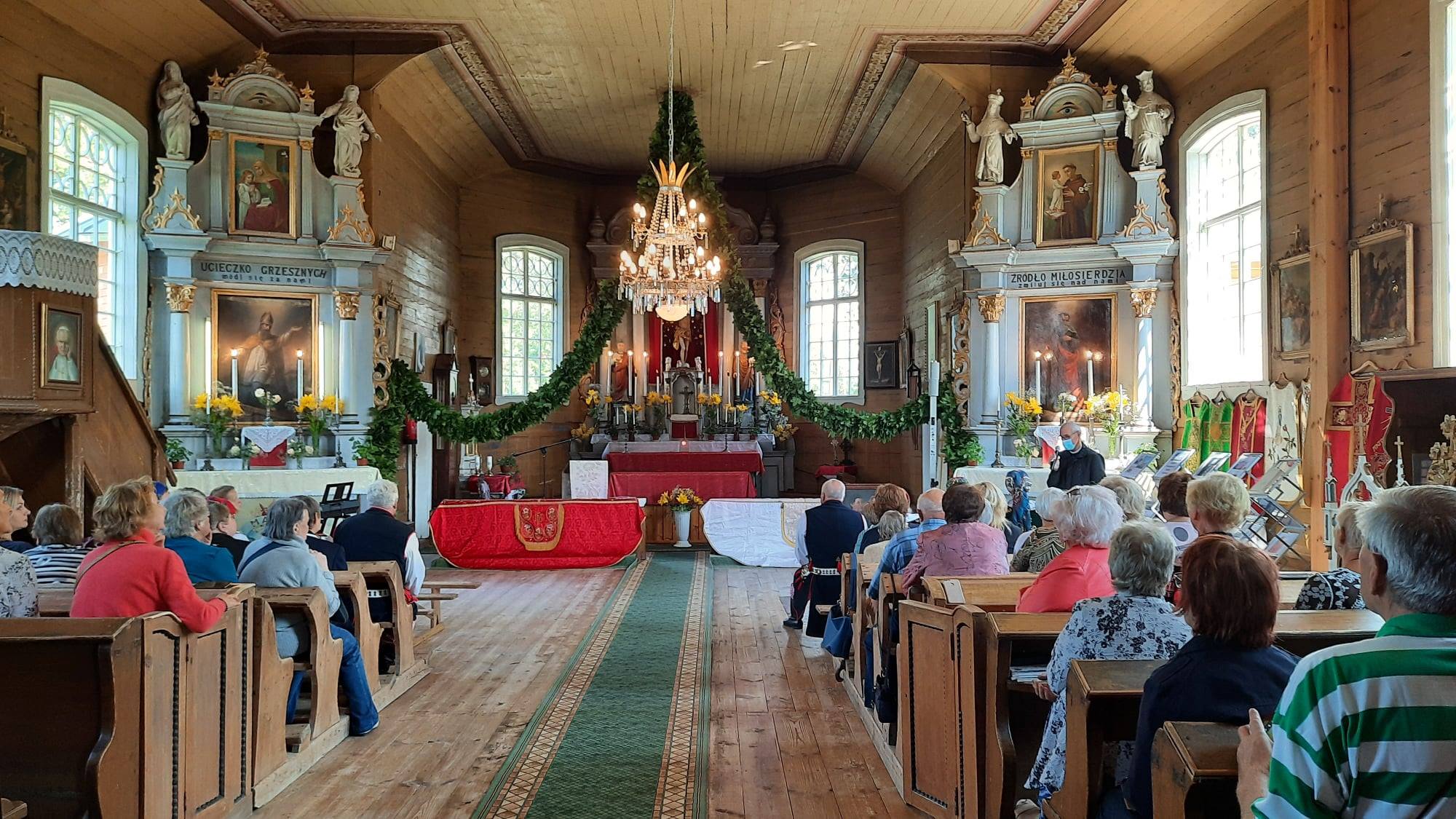 Bažnyčią puošė kunigo Jono Mačiulio paruošta sakralinio paveldo paroda. Kunigas pristatė daug bažnyčios vertybių, paaiškino jų vertę, atsakė i klausimus. Gaidės bažnyčioje yra ligi šių dienų išlikusių senų paveikslų (penki kultūros paminklai), kurios ne visada galima pamatyti. Paveikslai demonstravimui yra nuleidžiami tam tikra proga ir juos tą dieną visi turėjo galimybę pamatyti.