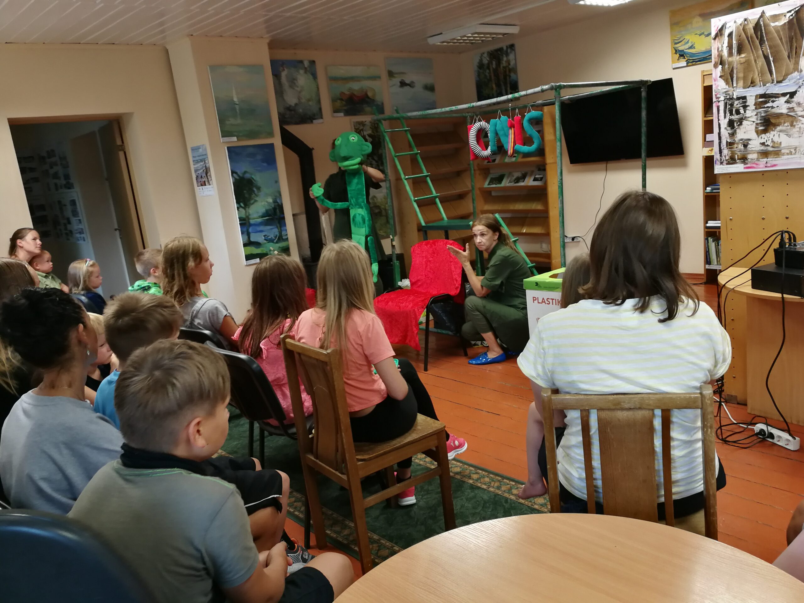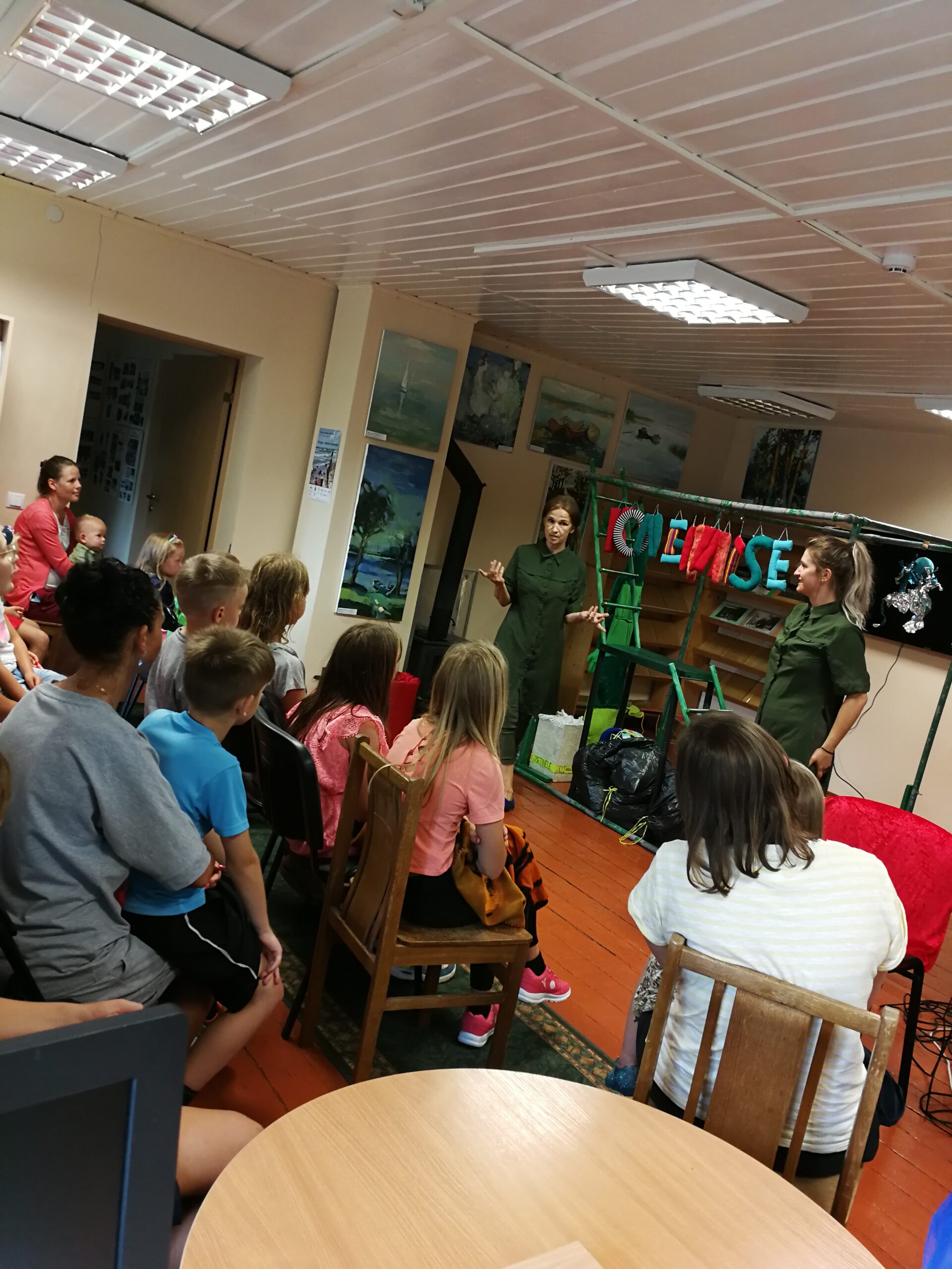 Karštą liepos 29 d. popietę į Palūšės biblioteką sugūžėjo kaip niekada  gausus vaikų ir jų tėvelių būrys  į Alytaus lėlių teatro „Aitvaras “  interaktyvų spektaklį  „Kontis ir Tvarkius“.