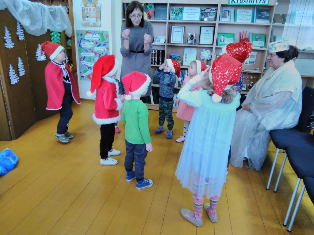 „Mįsliukas“ vaikučiams ir jų tėveliams suvaidino pasakėlę „Kaip žvėrys nuo žiemos bėgo“. Kartu su „Mįsliuku“ atvyko ir pati karalienė žiema. Jos labai reikėjo, Žiema pažėrė saują sniego, kad Seneliui, kuris atvyko iš pačios šaltosios šiaurės nebūtų per šilta. Nors Senelis ir būkštavo dėl šiltų orų mūsų krašte, bet Ceikinių bibliotekoje jautėsi gerai, neprakaitavo. Jis su didžiuliu susidomėjimu stebėjo priešmokyklinės ir ikimokyklinės grupės vaikučių nykštukų programėlę, o už daineles ir eilėraštukus dalino nepaprastai gražias ir saldžias dovanėles.