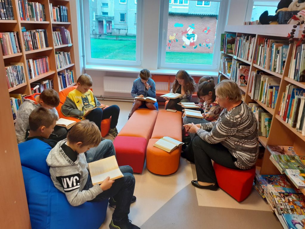 Didžiasalio biblioteka nuolat bendradarbiauja su „Ryto“ gimnazija. O rugsėjis – Vaižganto mėnuo: kaip tik 20 dieną sukanka 150 metų nuo jo gimimo. Tad penktokai su mokytoja Nijole Keraitiene ir bibliotekininke Gintare Jurgelėniene, užbaigdami Vaižganto metus, garsiai skaitė „Lino darbų pasaką“, kur surado galybę nepažįstamų, negirdėtų žodžių, iš gilios senovės atėjusių. Juos susirašė į sąsiuvinius, o kitą dieną gimnazijos muziejuje aiškinosi, kas tas kuodelis, kaip atrodo pakulos, kaip veikia audimo staklės. Į klausimą, ar norėtų patys pereiti lino kelią, kad savo rankomis drobės išsiaustų, dauguma atsakė neigiamai – toks ilgas ir sunkus darbas nelabai vilioja. Tačiau penktokai mano, kad senovę pažinti reikia ir įdomu. O ir bibliotekoje lankytis smagu – tiek gimnazijos, tiek gyvenvietės.