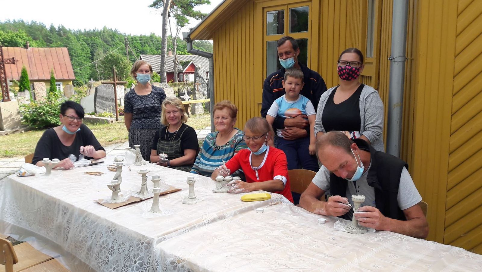 Ačiū Nerijai Daubarei už naujus atradimus ir gerą nuotaiką. Darbas su moliu ir pati aplinka (edukacija vyko bažnyčios šventoriuje) nuteikė kūrybiškai. Edukacijos metu sukurtos žvakidės bus dovanotos bažnyčioms. Tikimės, kad mūsų darbai sugrįš į Gedžiūnėlių bažnyčią.
