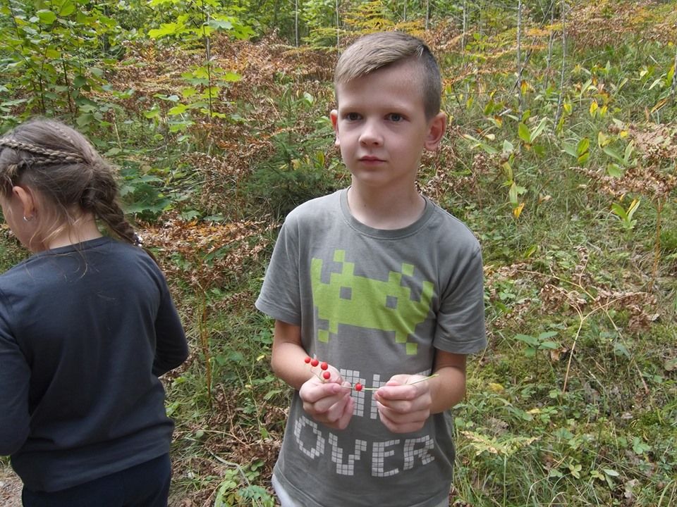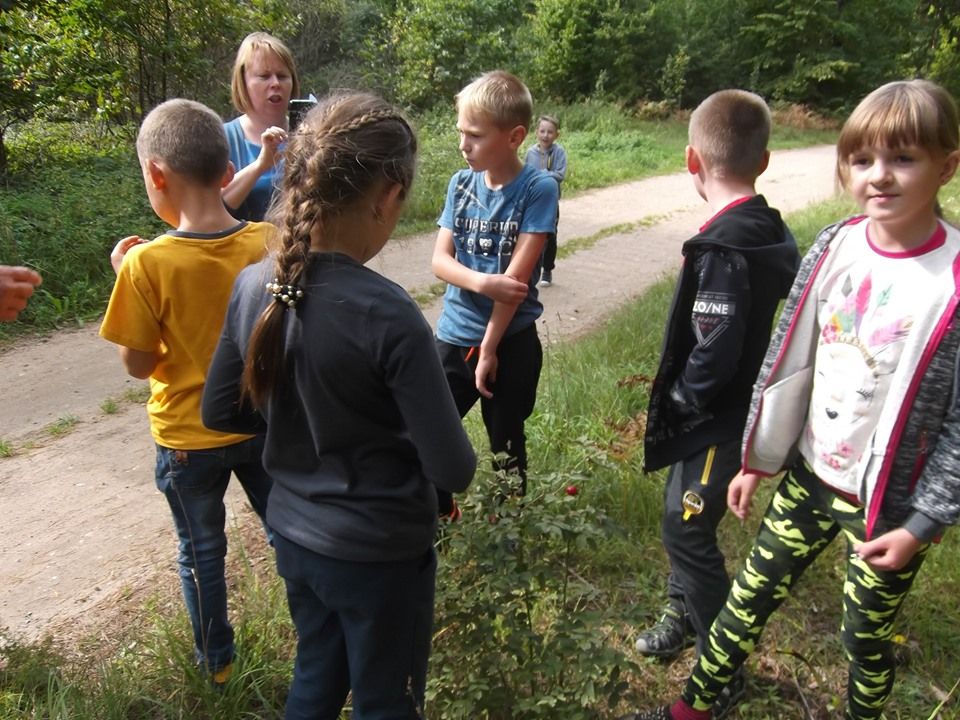 Biologijos pamoka prasidėjo nuo pakelėje augančių augalų ir medžių. Vaikus pasitiko rudeniškai pasidabinę šermukšniai, kurių uogas taip mėgsta paukščiai. Pasirodo, jei putinas, šermukšnis pilnas uogų, o ant lazdynų daug riešutų – ruduo bus šlapias, žiema šalta. Vaikai skanavo bruknių, dar nuo vasaros užsilikusių mėlynių bei gervuogių. Galima buvo pamatyti, paliesti ir užuosti augalus. Mokiniai suprato, kokia dosni yra gamta.