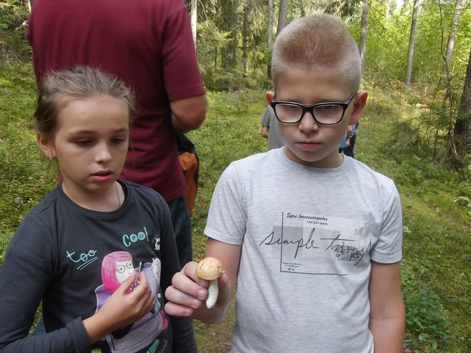 Eidami toliau miško keliuku pamokos dalyviai rado ir grybų: ūmėdžių, voveraičių, netgi gražuolį raudonikį. Buvo išties smagu. Mokiniai susidomėję klausėsi gamtininko pasakojimų kas gyvena ežere, kas čirškia ir krebžda žolytėje, kas kriauklytėje knibžda? Linksmiausia buvo tada, kai reikėjo į rankas paimti gyvą varlytę, dar šlapią kriauklę, žiogelį… Juk visa tai dažniausiai matome tik knygose. Pamokos gamtoje laikas neprailgo, juk tiek įdomaus ir vertingo sužinota ir pamatyta.