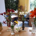 Gėles į biblioteką nešė ir darbuotojai, ir gyventojai: Danuta Jatulienė, Jolanta Jurėnienė, Janina Gimževskienė, Žydrė Juodagalvienė, Onutė Martinėnienė, Lina Raginytė, Jurina Paslauskienė, Vitalija Medzevičienė, Marija Rutkovskij, Laima Teteriukovienė, Loreta Araminienė. Na, o Ramunė Kliaugienė dovanojo meniškai keptų lelijų. Taip visi kartu sukūrė šventinę nuotaiką. Paroda skirta Valstybei dienai ir miesto gimtadieniui. O lelijos ir bibliotekoje, ir jos kiemelyje dar vis žydi ir graži Ignalinos vasara tęsiasi…