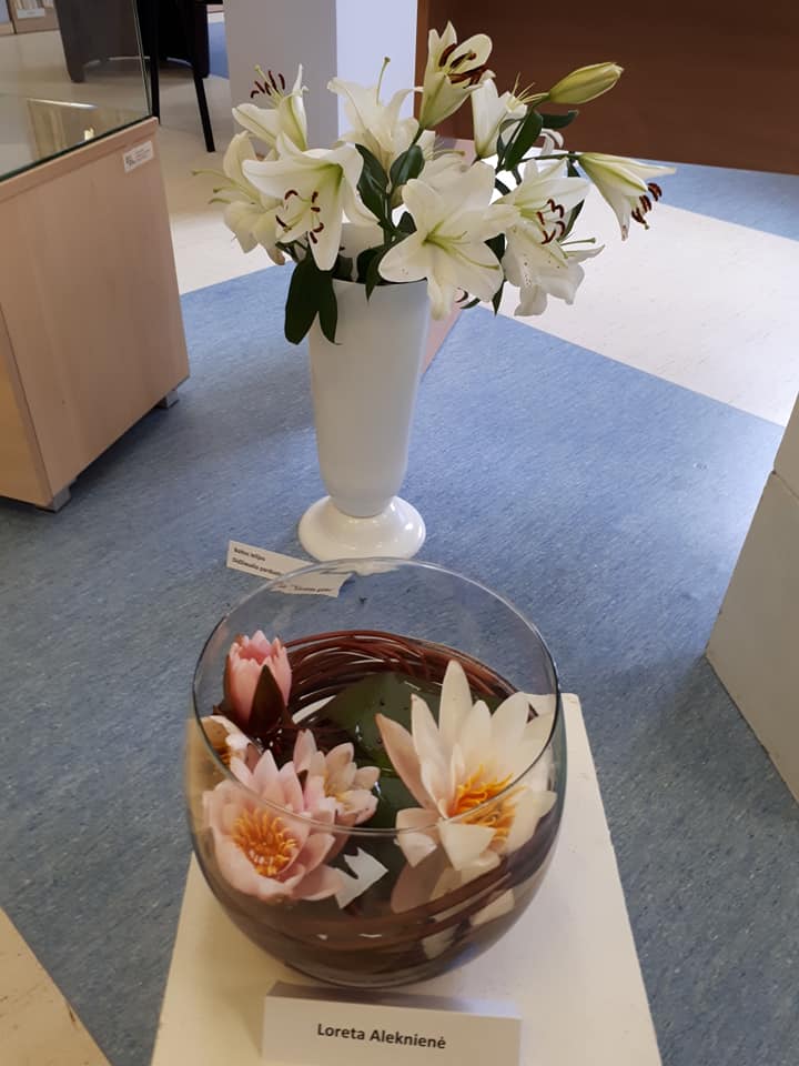 Gėles į biblioteką nešė ir darbuotojai, ir gyventojai: Danuta Jatulienė, Jolanta Jurėnienė, Janina Gimževskienė, Žydrė Juodagalvienė, Onutė Martinėnienė, Lina Raginytė, Jurina Paslauskienė, Vitalija Medzevičienė, Marija Rutkovskij, Laima Teteriukovienė, Loreta Araminienė. Na, o Ramunė Kliaugienė dovanojo meniškai keptų lelijų. Taip visi kartu sukūrė šventinę nuotaiką. Paroda skirta Valstybei dienai ir miesto gimtadieniui. O lelijos ir bibliotekoje, ir jos kiemelyje dar vis žydi ir graži Ignalinos vasara tęsiasi…