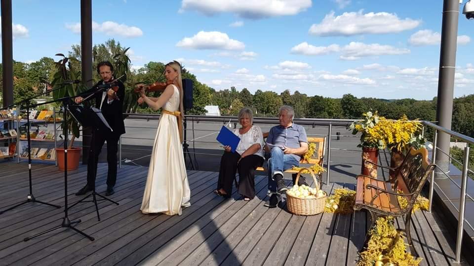 Poezija ir muzika skambėjo atviroje terasoje ant bibliotekos stogo. Renginyje, kurį vedė Gražina Karlaitė, eiles deklamavo Zarasų krašto literatai, savo eilėraščius dovanojo poetas Viktoras Rudžianskas, nuostabius muzikinius kūrinius atliko smuiko virtuozai Vilhelmas Čepinskis ir Viktorija Čepinskienė. Ignaliniečiams nepaprastą įspūdį paliko Zarasų viešosios bibliotekos pastatas su įvairiomis erdvėmis, o nuo priestato stogo atsiverianti Zaraso ežero panorama tiesiog sužavėjo. Ignaliniečiai taip pat aplankė ir Zarasų apžvalgos ratą.