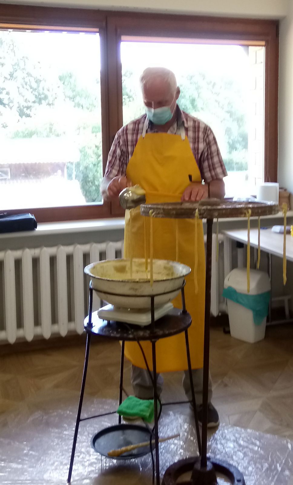 Į edukaciją susirinko Linkmenų bendruomenės nariai, norintys sužinoti, kaip senuoju papročiu buvo liejamos vaško žvakės ir patys nusilieti. Vedančioji metodininkė Danutė Rastenienė pristatė trumpą filmuką „Žvakės atsiradimo paslaptis“. Po to ji papasakojo apie žvakių liejimo būdus ir parodė, kaip reikia semti iš dubens ir tolygiai pilti ant lininio siūlo (žvakės dagtis turi būti iš lininio siūlo) šiltą vašką palaipsniui sukant lanką. Visi susirinkę išbandė šį žvakių liejimą senuoju pylimo ant lanko būdu. Sukietėjus pirmam sluoksniui, edukacijos dalyviai vėl pylė ir stingdė vašką, kartojo, kol susidarė norimo storio žvakė. Nuimtas žvakes, kad jos būtų tiesios, ridinėjo ant lygaus paviršiaus lygia lentele. Edukacijos pabaigoje buvo žiūrimas filmas „Vaško žvakės gaminimas namų sąlygomis“, kuriame buvo patarimų, kaip žvakes pasigaminti namų sąlygomis.