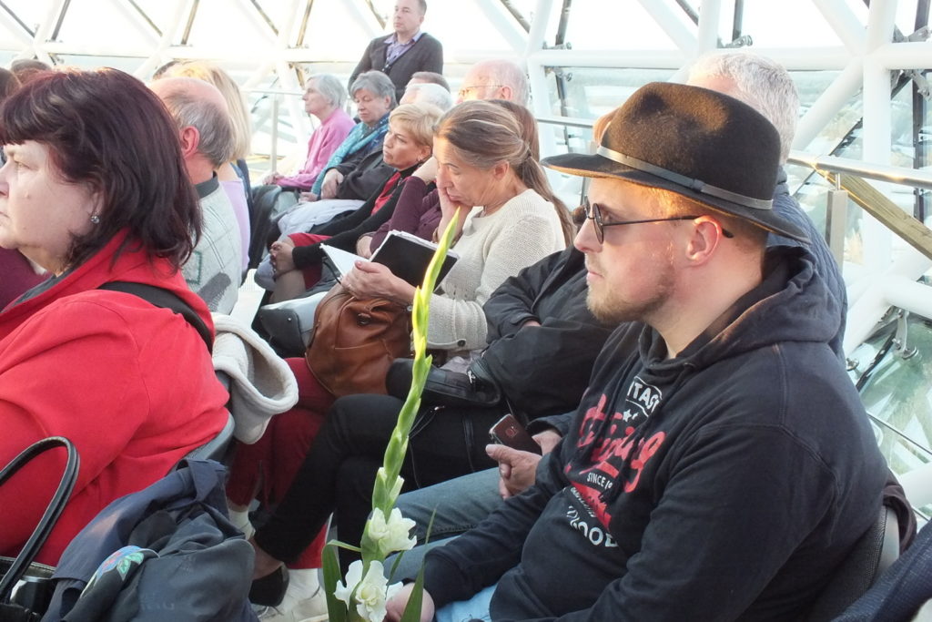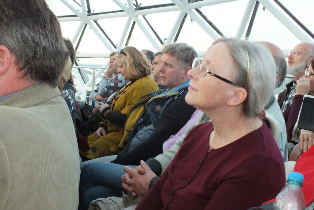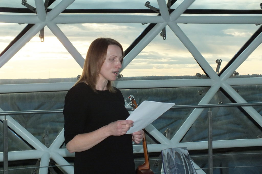 Susipažinę su šiame muziejuje eksponuojama meteoritų kolekcija, su astronomija, kosmonautika susijusiais eksponatais renginio dalyviai kilo į apžvalgos aikštelę, iš kurios atsivėrė puiki Aukštaitijos miškų ir ežerų panorama. Sužavėti vaizdų iš aukščio ir nuostabaus saulėlydžio, netradicinėje erdvėje, savo kūrybos dovanomis dalinosi Molėtų rajono literatai Virginija Žvarėlaitė, Nijolė Navikienė, Laima Pacevičienė, Rimvydas Kalvelis, Sigutė Lisauskienė, Robertas Pikčiūnas bei poetas, literatūralogas Vainius Bakas. O muzikinius kūrinius visiems dovanojo kraštietis, dainuojamosios poezijos kūrėjas ir atlikėjas Kazimieras Jakutis.